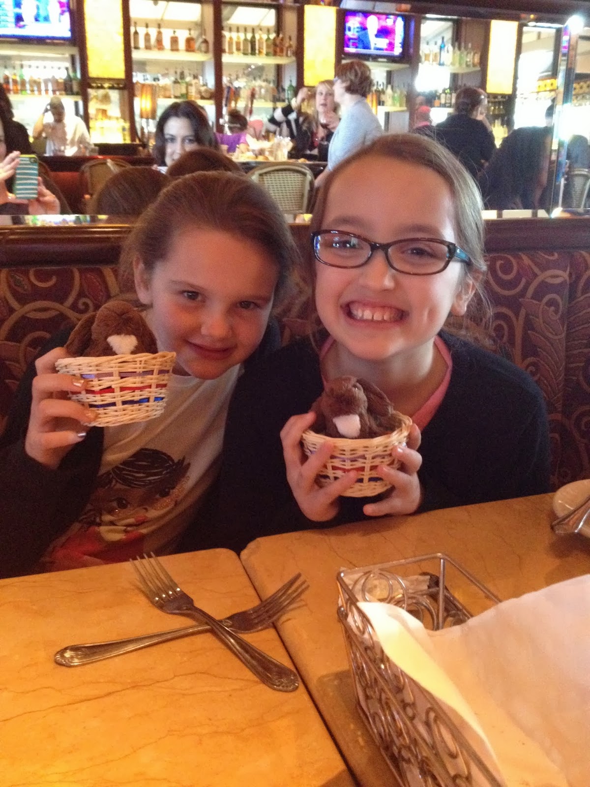 This is the 2nd year that Kaley and I took the girls to the American Girl store to see the Doll of the Year. We didn't do the hair styling or ear piercing this year. After buying too much, we had lunch at The Cheesecake Factory. It's so cute that they have seats that attach to the table for the dolls.